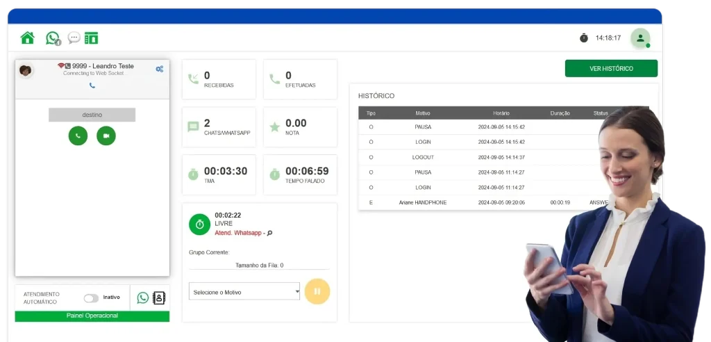 Filas inteligentes, relatórios em tempo real, gravação de chamadas, distribuição automática e muito mais!